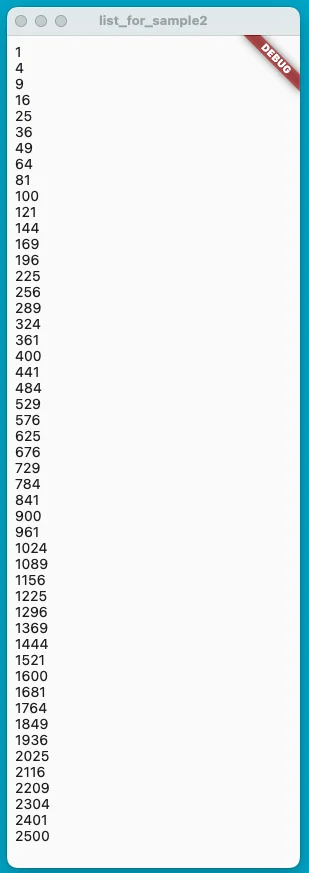 1 ~ 50 の数字の2乗を表示するListViewを作成してみます。
