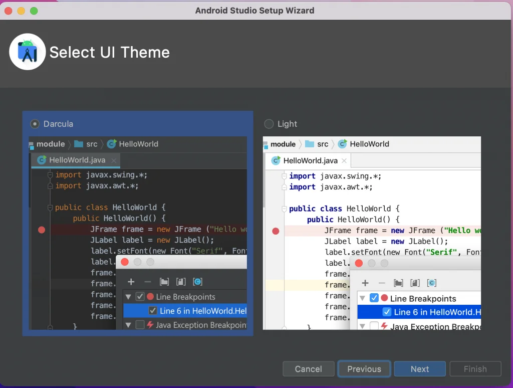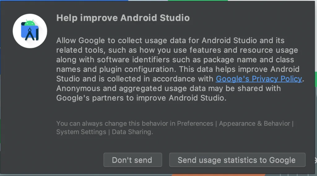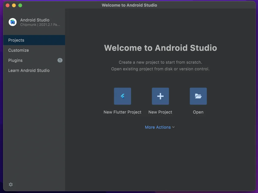 ドックからAndroid Studio を開きます。