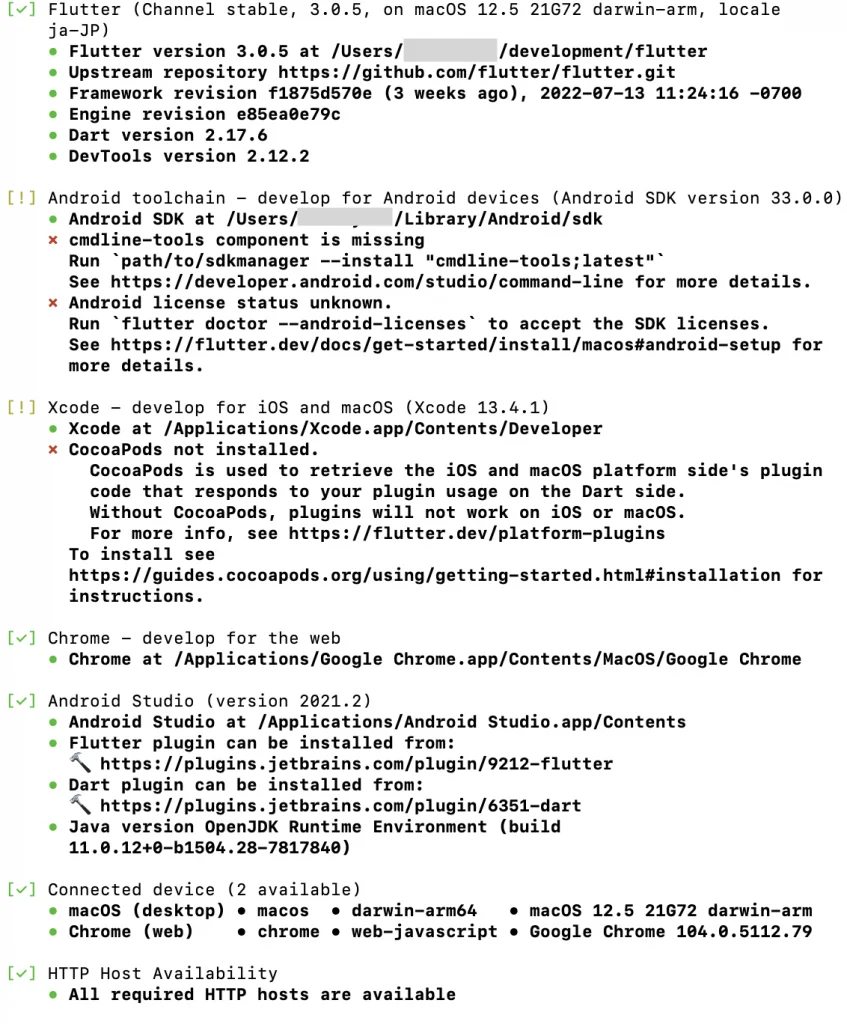 以上の対応でflutter doctor のエラーは全て消えたはずです。 お疲れさまでした!