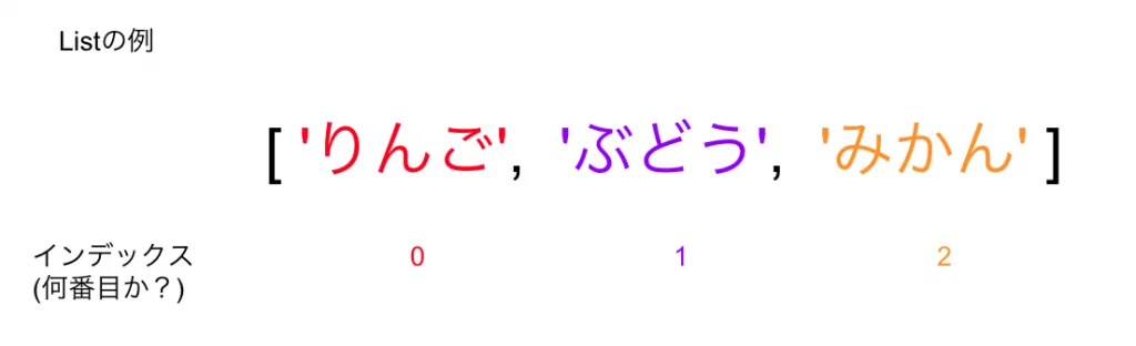 上記Listをfluitsという変数に格納した例となります。