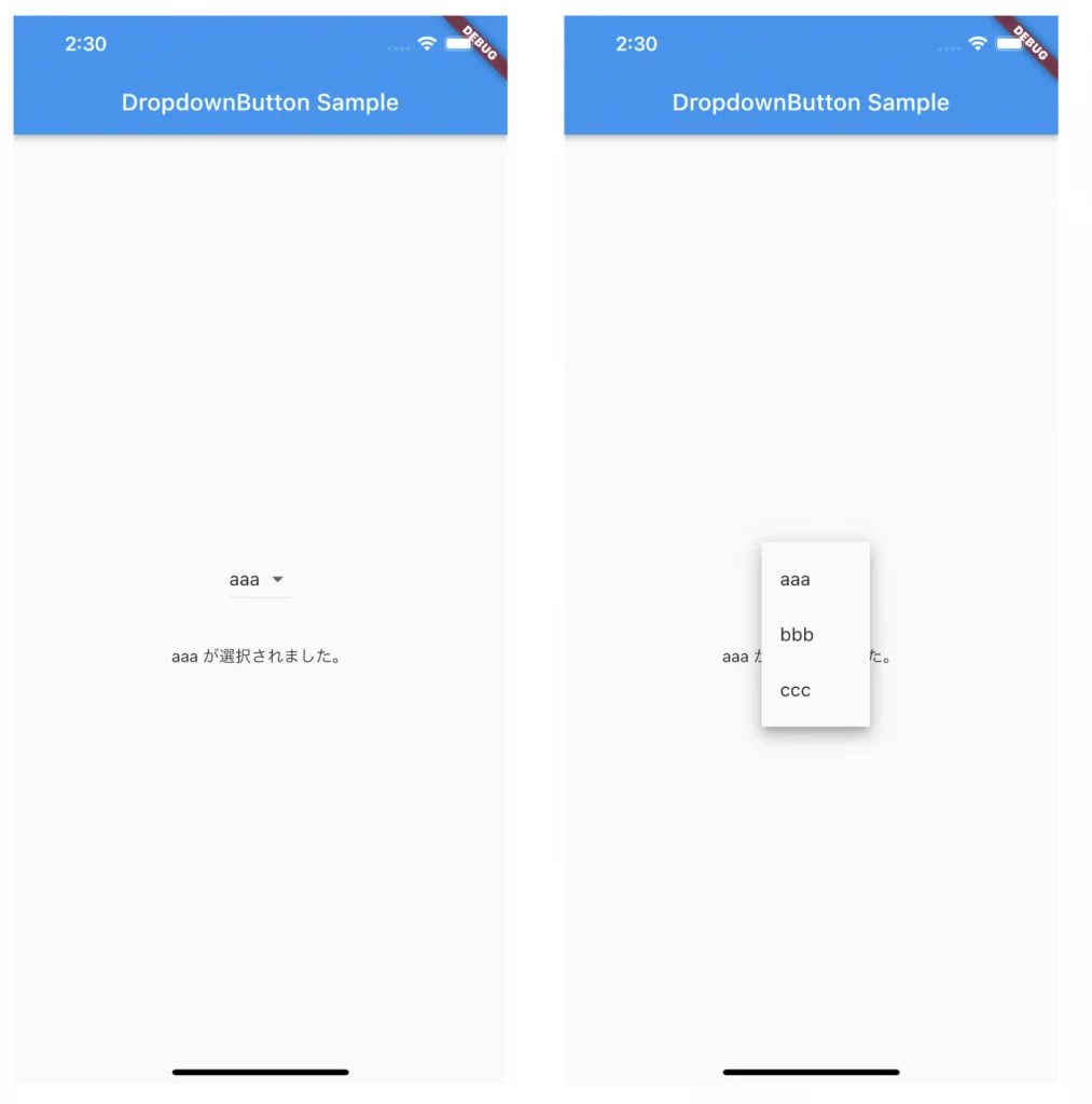 DropdownButton Widgetの基本的な使い方を紹介しました。