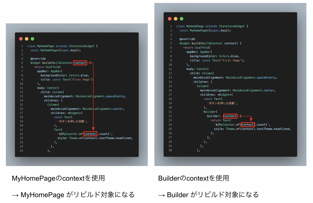 依存関係がInheritedWidgetの下にあるWidgetならどこからでも