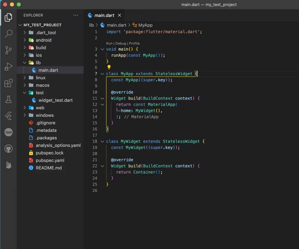 以下のコマンドを打ち、my_stateless_widget という名前のテンプレートを作成します。