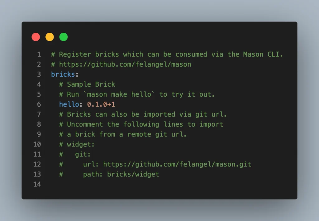 これをコマンド一発で自動で生成してくれるのがMason (Mason CLI) です。