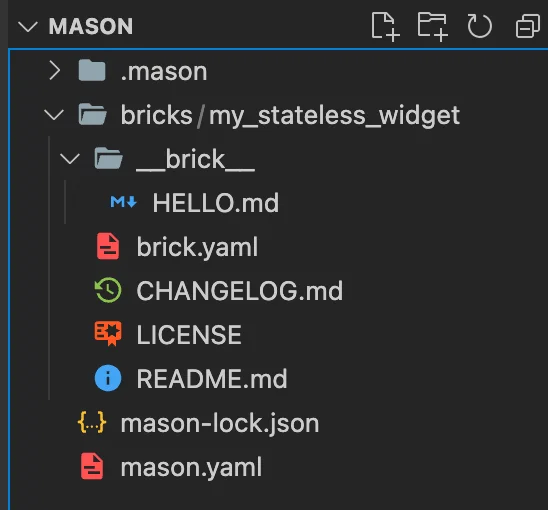 任意のフォルダで、mason make my_stateless_widget を実行してみて下さい。