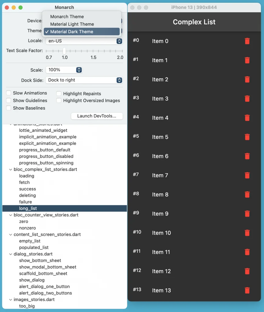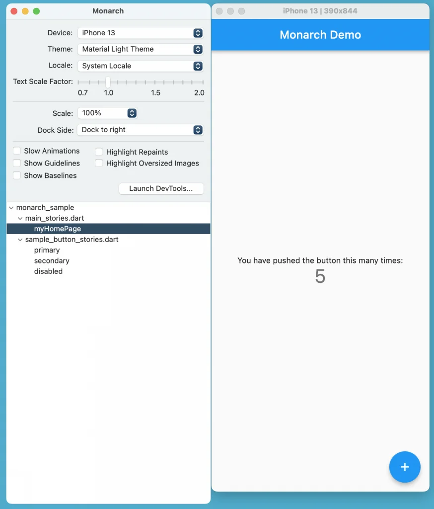 Monarch と似たようなツールとして、storybook_flutter プラグインがあります。