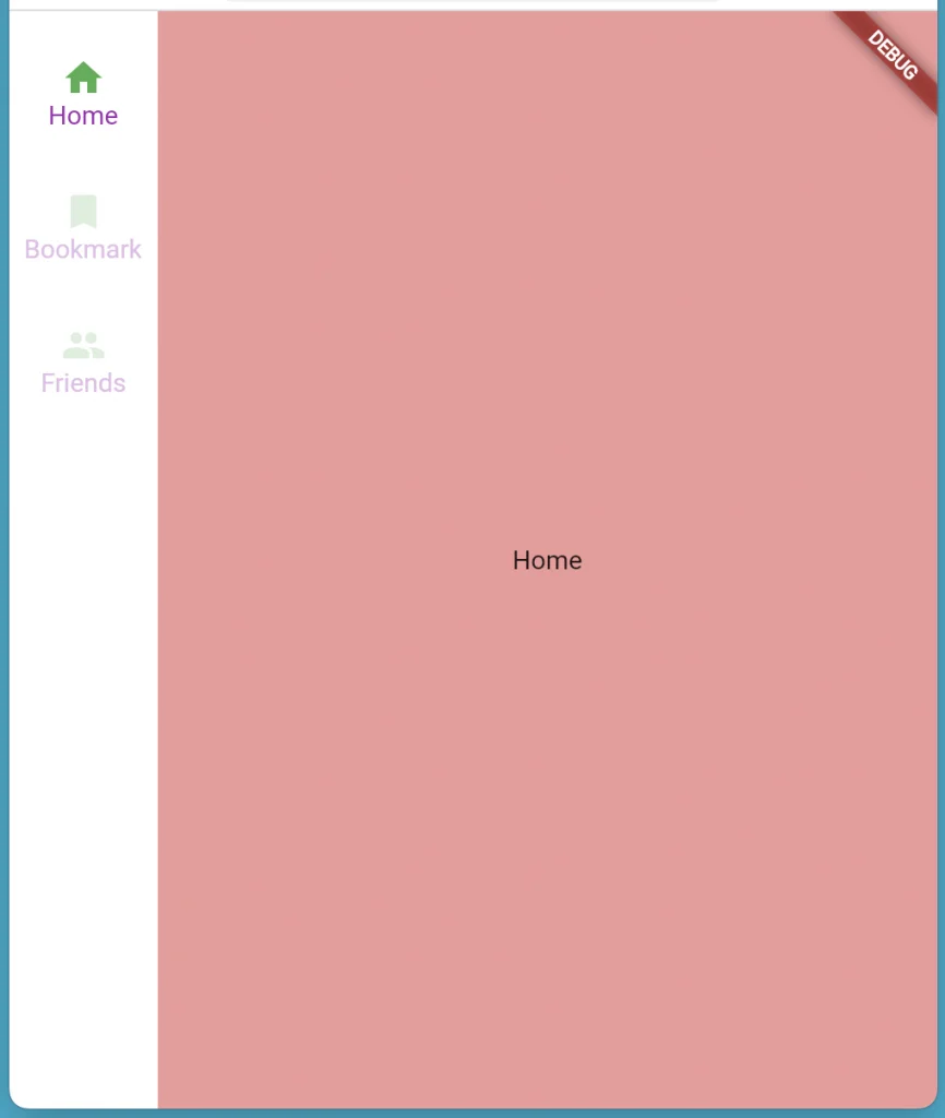 NavigationRail Widgetと表示する画面のWidgetをRowで並べます。