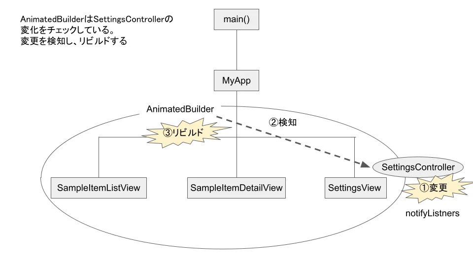AnimatedBuilderはSettingControllerの変化をチェックしています。