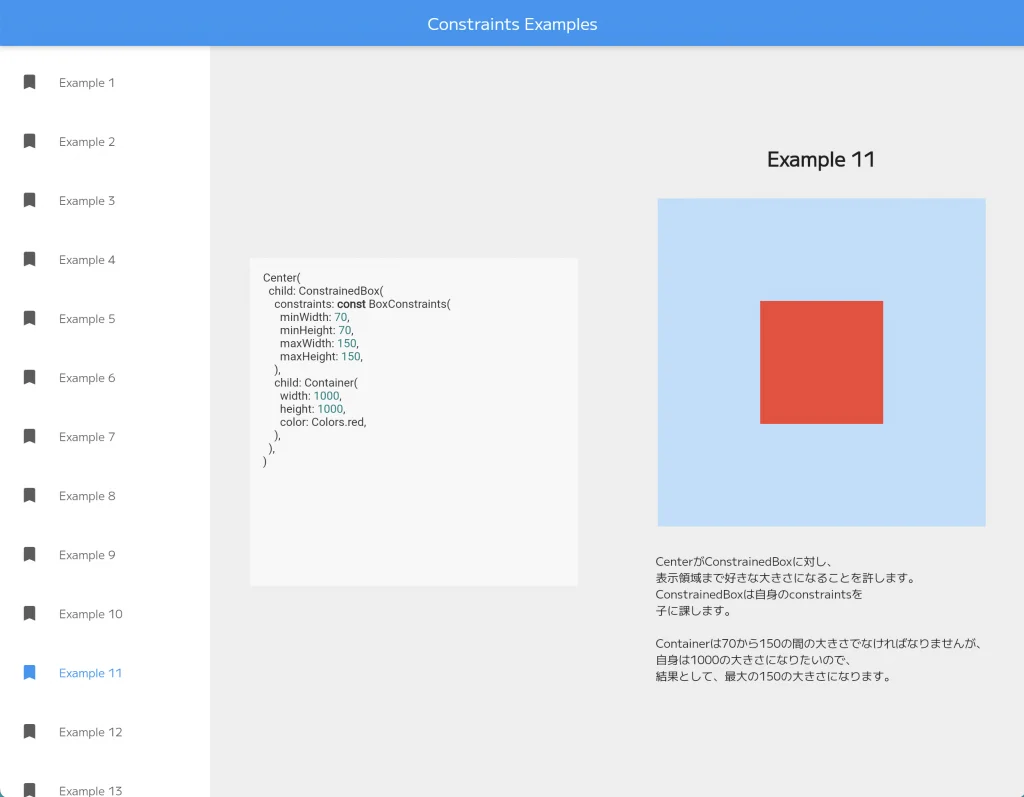 Example 2では赤いContainerが強制的に表示領域を埋め尽くすようになりました。