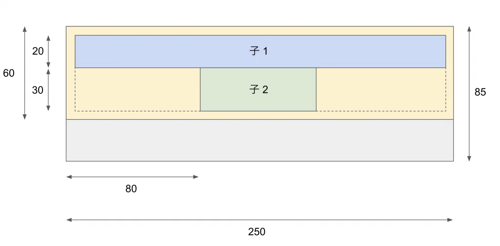 制約は下ります。大きさは上ります。親が位置を決めます。