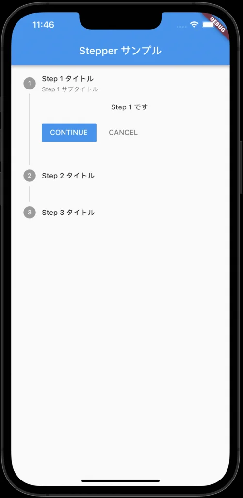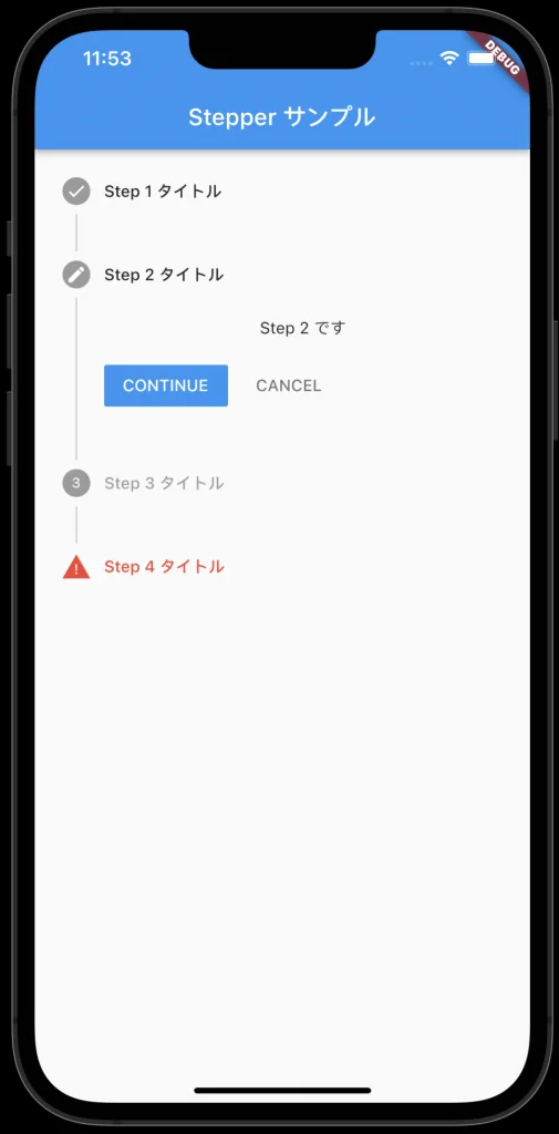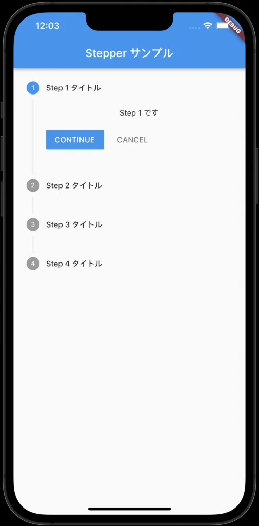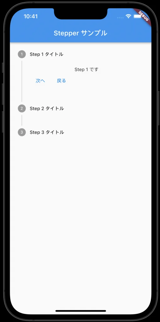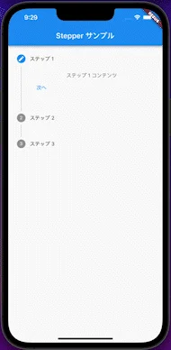 appBar: AppBar(title: const Text('Stepper サンプル')),