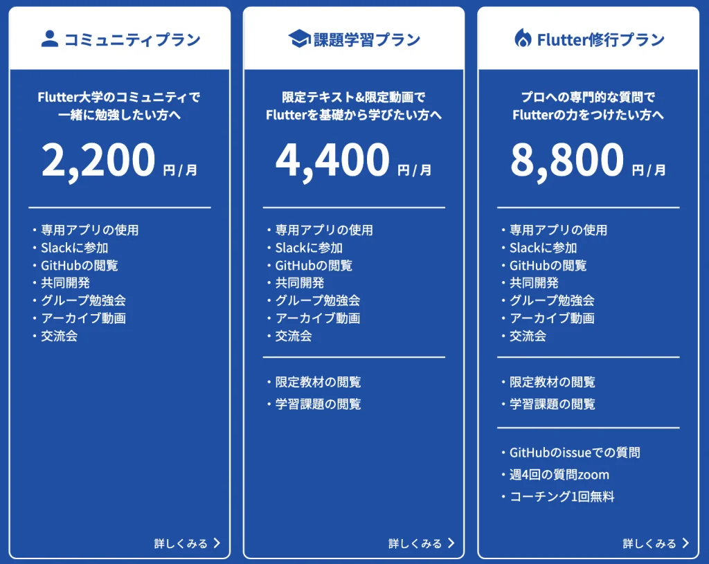 結局のところ、自分がFlutterの学習にどれくらい投資できるかだと考えます。 悩んでいる方は、まずは1ヶ月、コミュニティプランの2,200円を 投資してみるのはいかがでしょうか? 1ヶ月後、続けるにしろ、辞めるにしろ、悪い結果にはならないはずです。