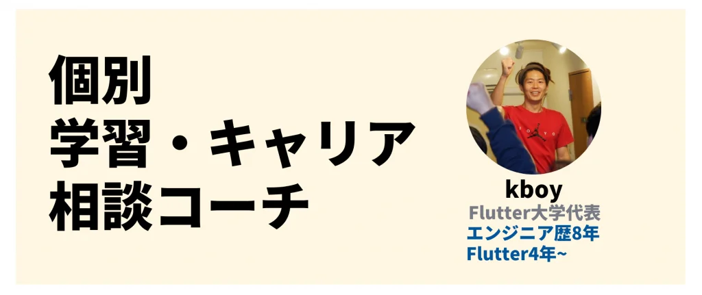Flutter大学創設者でもある、私kboyがコーチをやります!